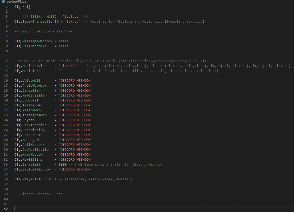 If you want to use music and playtube app: you must fill Cfg.TebexTransactionID line with your tbx-id.